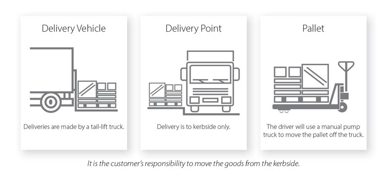 Please note: Consider the weight of the products ordered for delivery. Some of our products require extra people or equipment to manoeuvre once delivered due to the heavy weight. You should consider the logistics of moving the products from the unloading point. We deliver our products to the nearest accessible unloading point and offload them from the delivery vehicle.